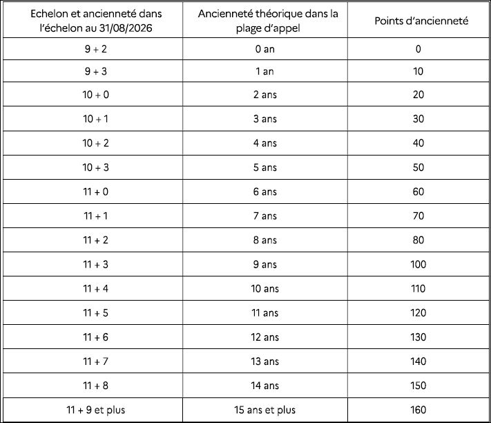 Au moins 10 points par an à partir de la 3e année d’ancienneté dans le 9é echelon
